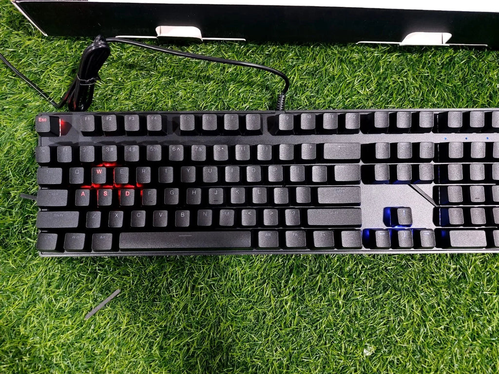 Is L108 RGB gaming keyboard mein different RGB lighting modes ✨ diye gaye hain jo gaming setup ko stylish aur attractive banate hain. Mechanical keys strong feedback aur smooth typing experience deti hain, jo long gaming sessions aur office work dono ke liye comfortable hai.