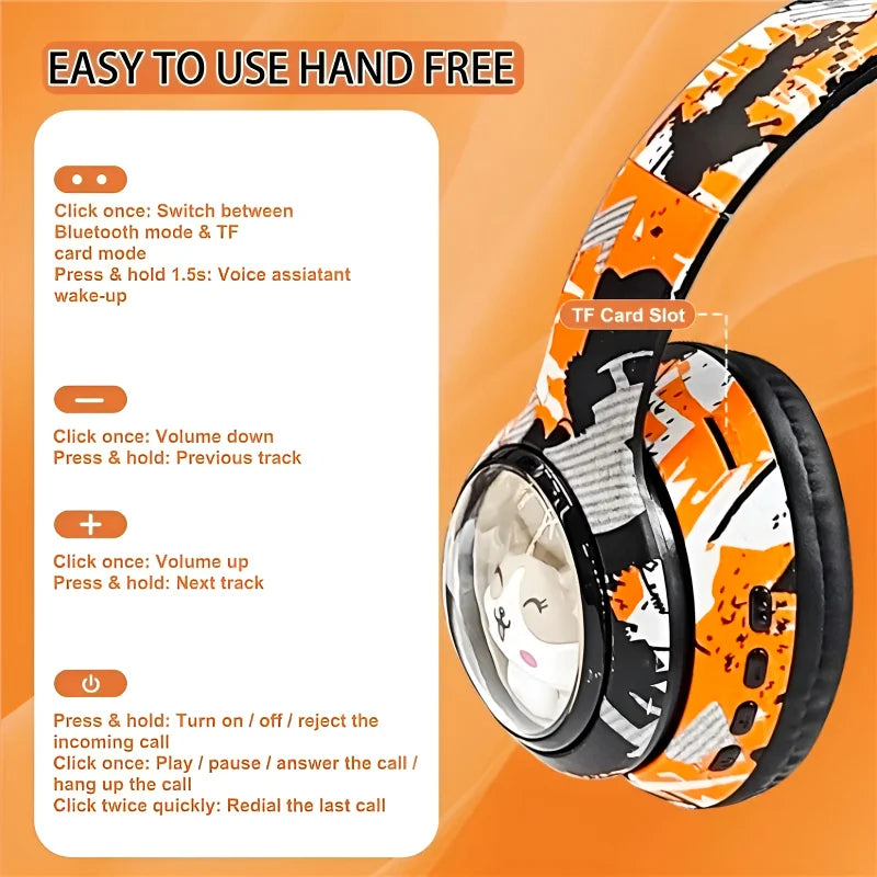 AKZ-36 Creative Graffiti Wireless Headphones | Bluetooth 5.3, Hi-Fi Sound, FM Radio & TF Card